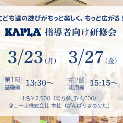 2023年夏の「KAPLA指導者向け研修会」の開催日程をご案内いたします。